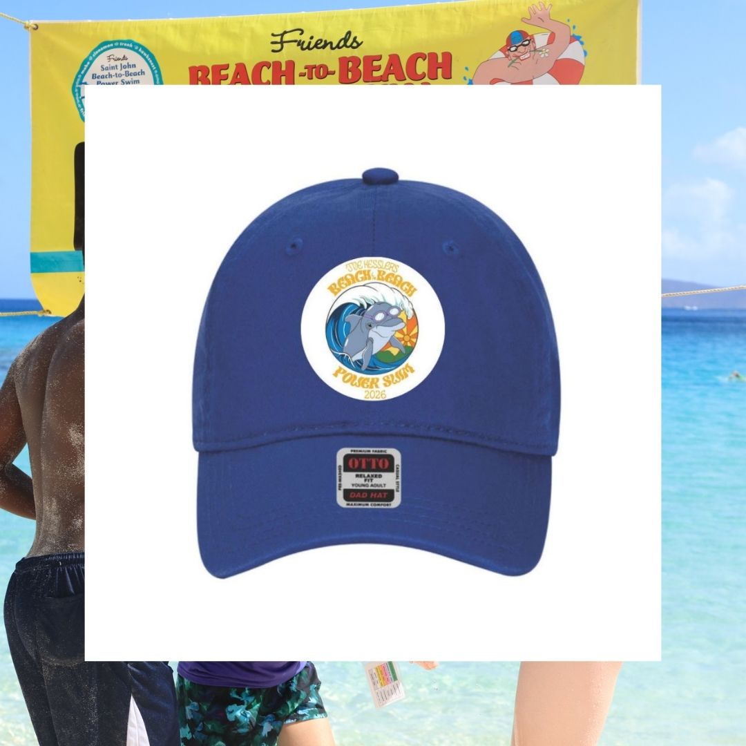 The 2026 Joe Kessler's Beach to Beach Power Swim blue caps feature this year's logo. Available in adult and youth versions.